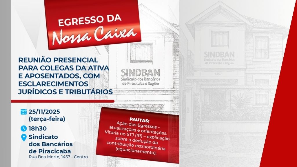 Aposentados e ativos da Nossa Caixa são convidados para reunião de esclarecimentos Os bancários egressos da antiga Nossa Caixa terão a oportunidade de sanar dúvidas