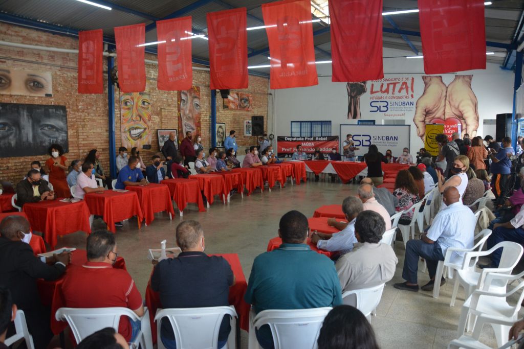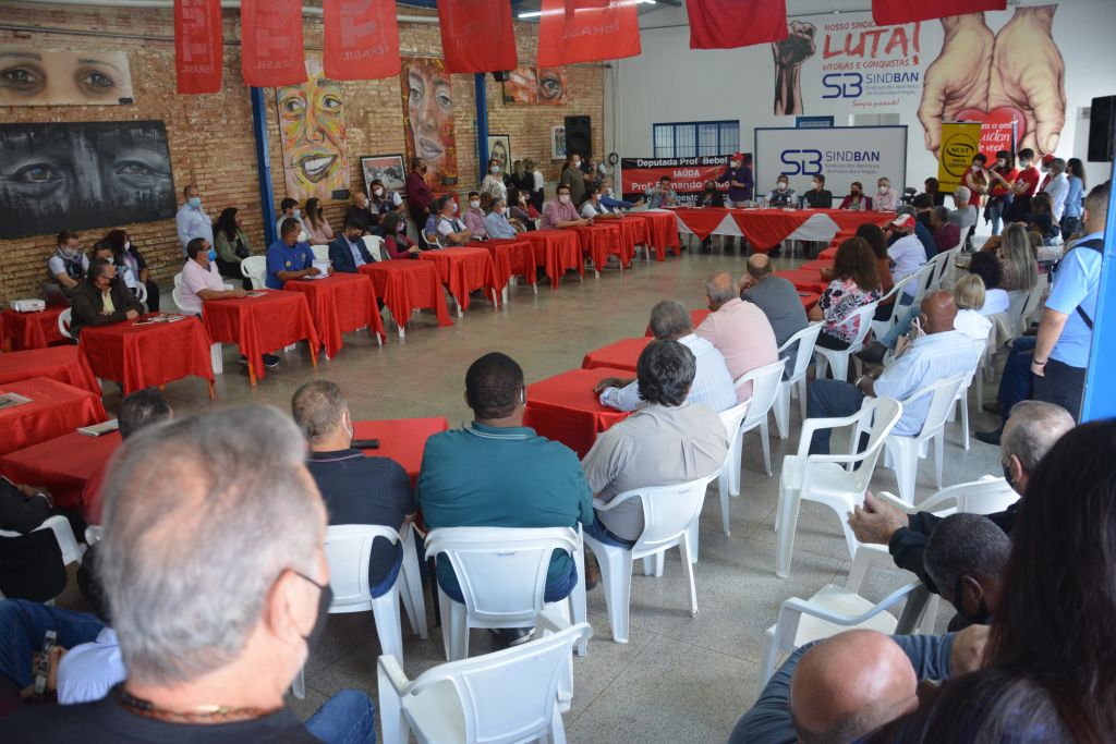 Às vésperas de completar 62 anos, o SINDBAN sediou nesta quinta-feira, 21/10, plenária do Movimento Sindical com lideranças políticas. Mais de 20 entidades de trabalhadores de várias centrais sindicais foram representadas no encontro que contou com a presença dos ex-ministros Fernando Haddad, Alexandre Padilha, da deputada estadual Bebel Noronha, do presidente estadual da Central Única dos Trabalhadores, Douglas Izzo.