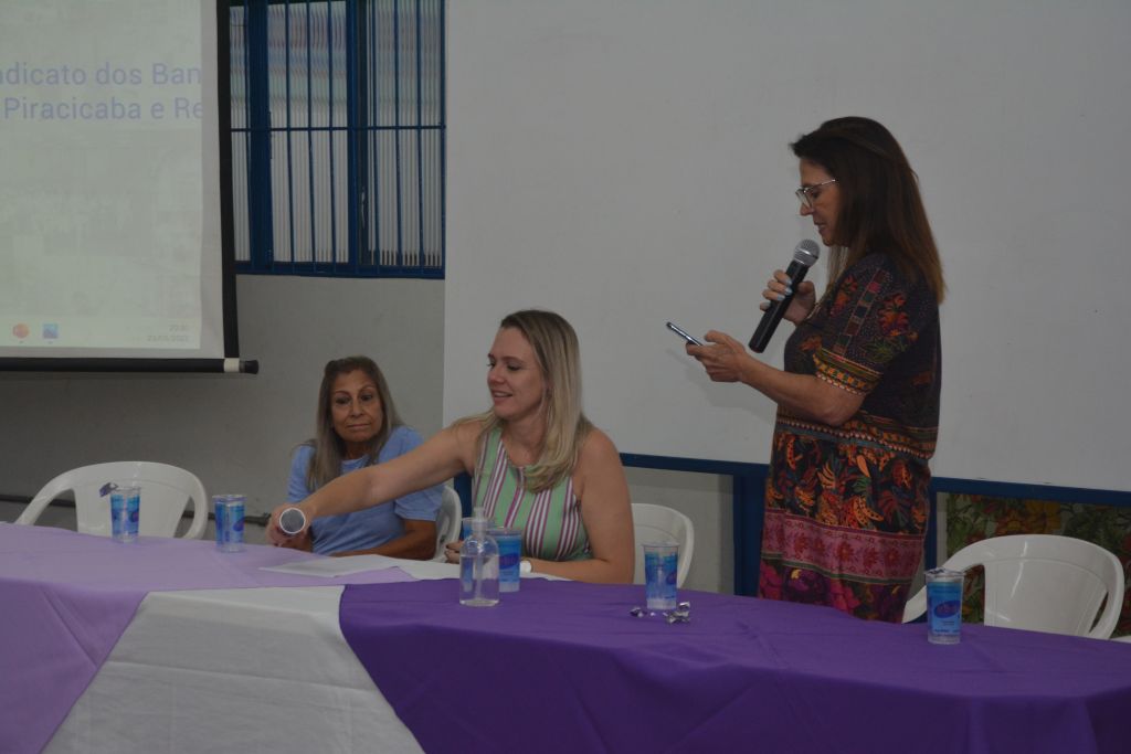 O SINDBAN promoveu palestra com a psicóloga Danielle Pagotto Franco para tratar muitos dos aspectos que interferem na saúde mental da mulher. Ela os classificou em duas categorias: biológicos e ambientais.
