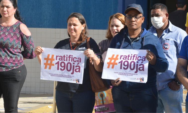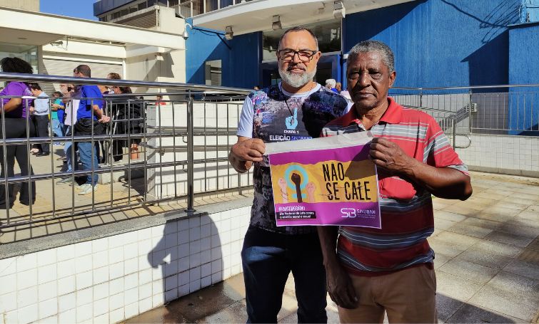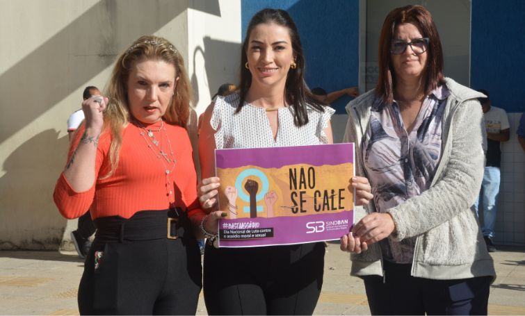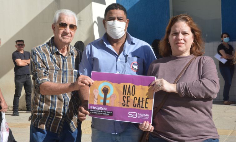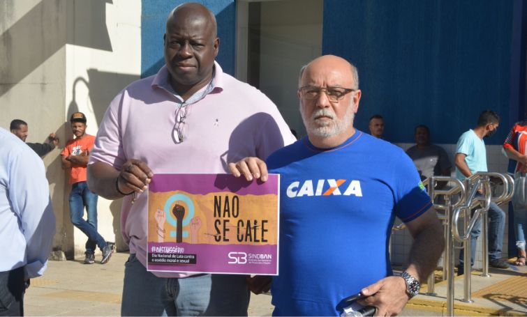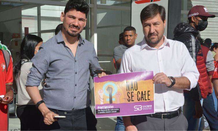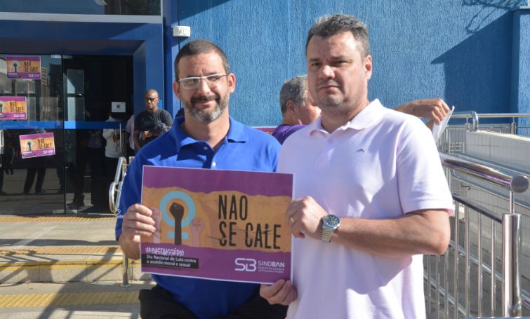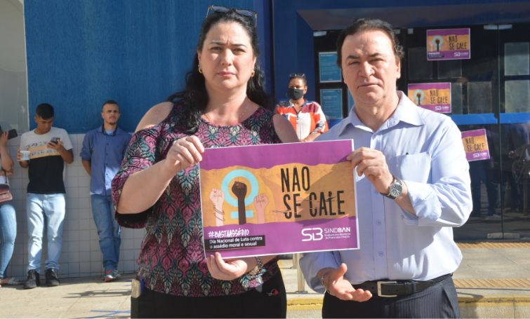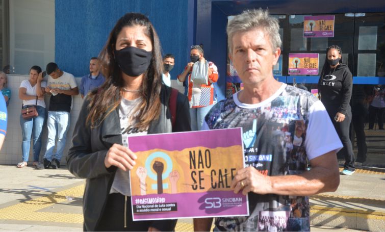 Diretores do SINDBAN realizaram na manhã desta terça, 5/7, ato pelo fim do assédio moral e sexual no ambiente de trabalho, em particular na categoria bancária.