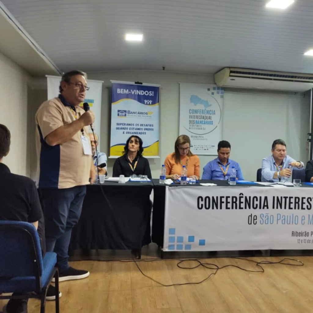 Realizada nos dias 12 e 13 de julho, a Conferência Interestadual dos Bancários de São Paulo e Mato Grosso do Sul reuniu, em Ribeirão Preto, cerca de 150 pessoas, entre dirigentes sindicais e convidados, e debateu os temas prioritários para a categoria no atual contexto político e econômico do país, com destaque para questões como a garantia de emprego, saúde e direitos.