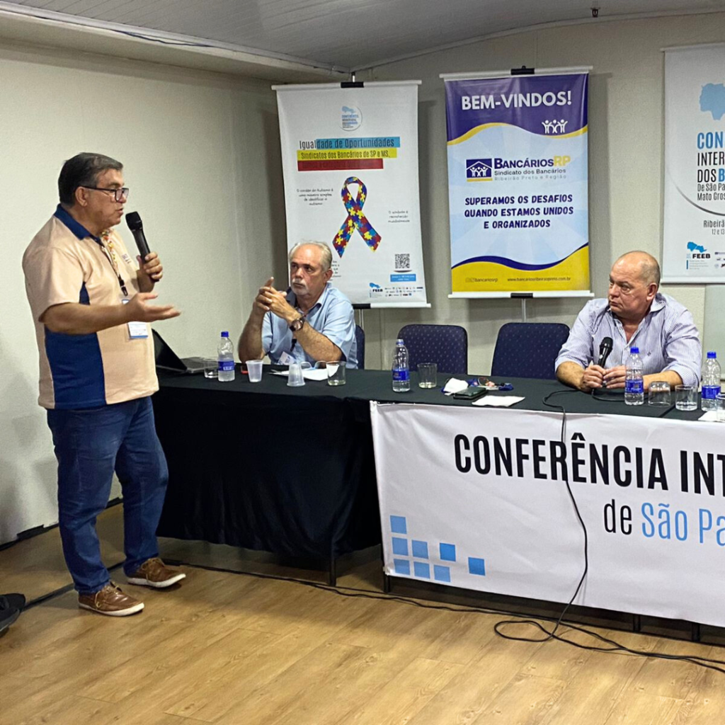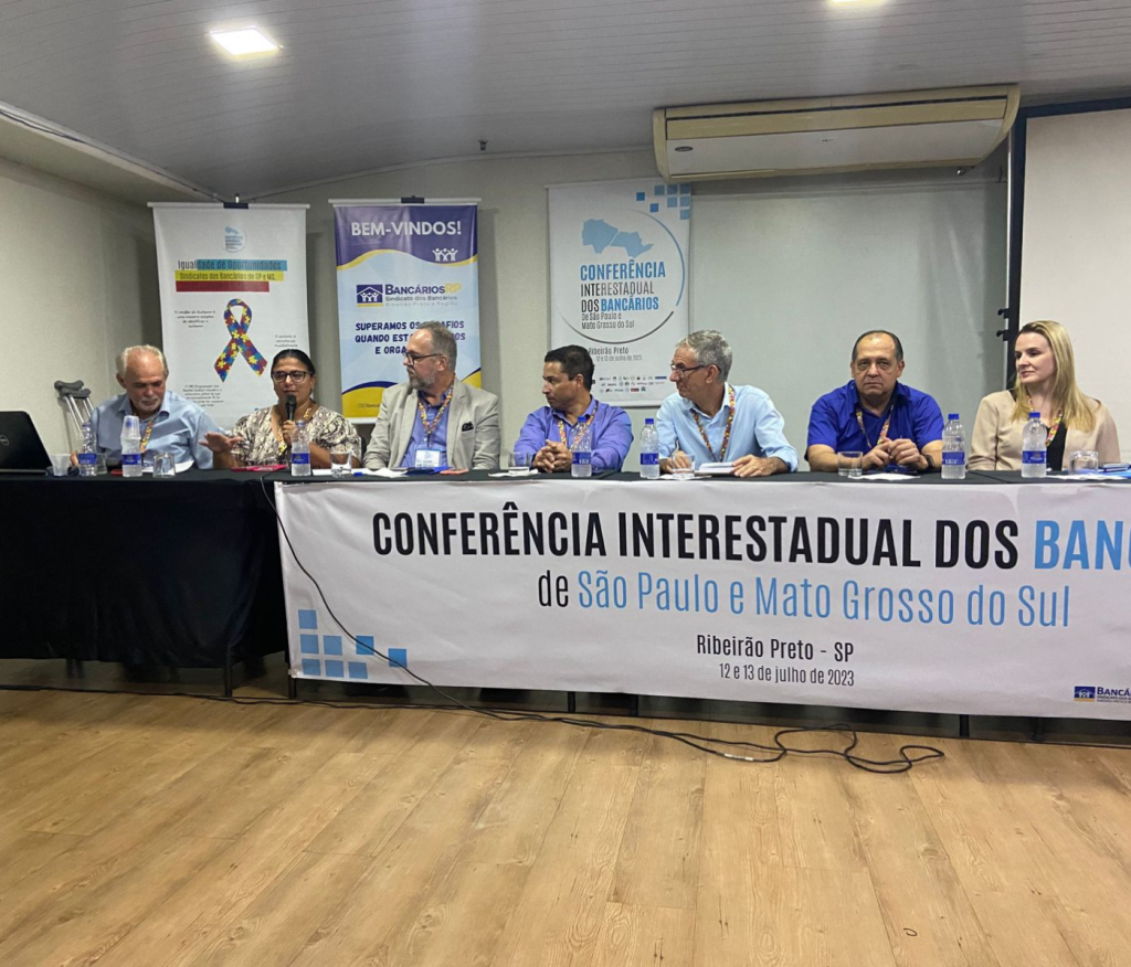Realizada nos dias 12 e 13 de julho, a Conferência Interestadual dos Bancários de São Paulo e Mato Grosso do Sul reuniu, em Ribeirão Preto, cerca de 150 pessoas, entre dirigentes sindicais e convidados, e debateu os temas prioritários para a categoria no atual contexto político e econômico do país, com destaque para questões como a garantia de emprego, saúde e direitos.