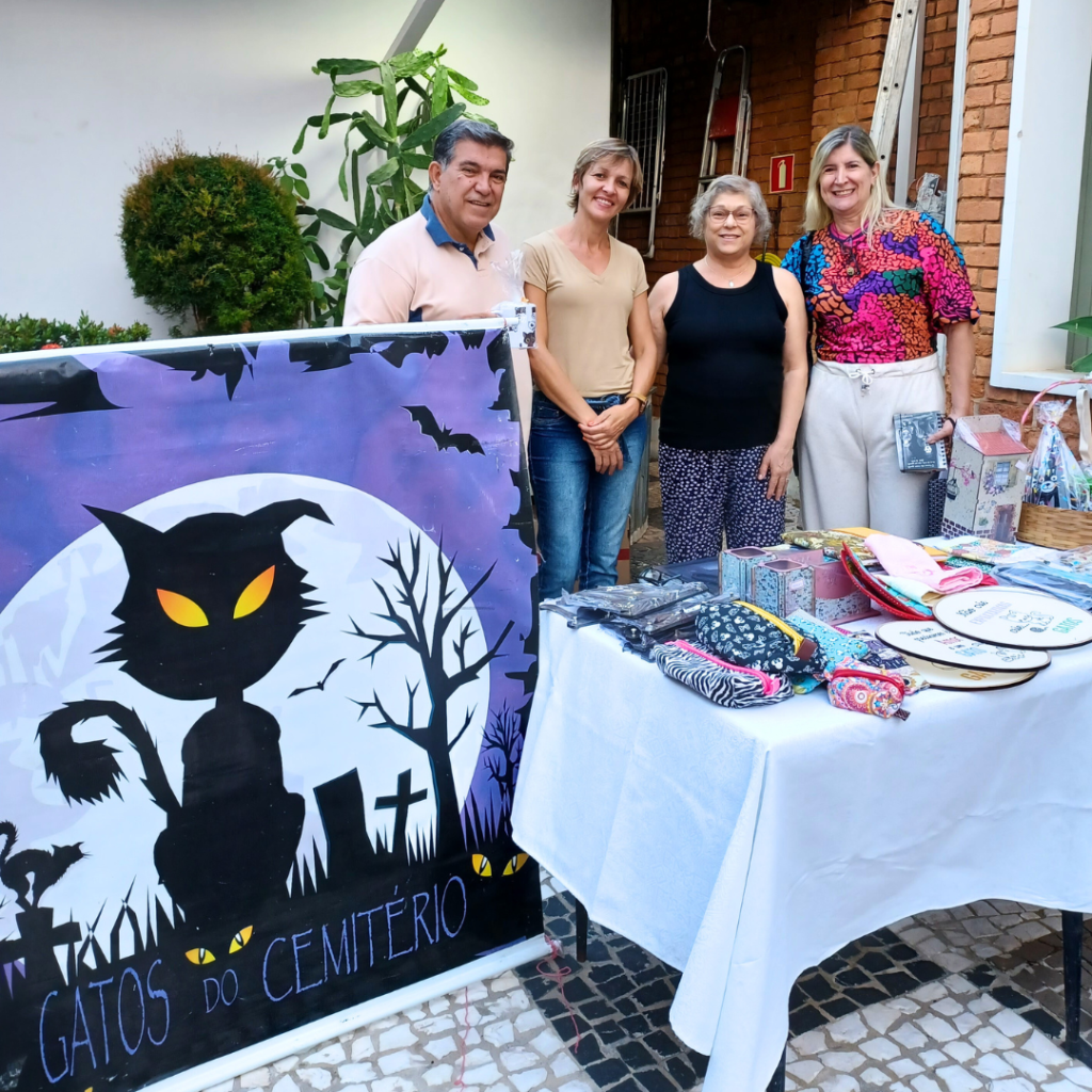 Os diretores e diretoras do Sindicato também tiveram a oportunidade de adquirir produtos do Bazar dos Gatos do Cemitério, mantido por voluntárias que atuam nesta área. Os recursos obtidos pela iniciativa são todos revertidos ao abrigo dos gatos, para a complementação e distribuição de ração no Cemitério da Saudade e, principalmente, saldar dívidas com veterinários que realizam o tratamento e castração dos animais.