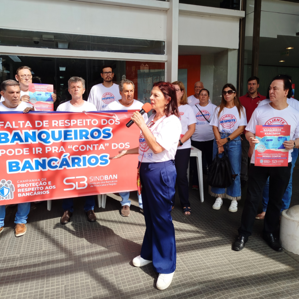 O Sindicato dos Bancários de Piracicaba e Região lançou na última terça-feira, 6, com uma manifestação em frente ao Banco Itaú, na praça José Bonifácio, uma Campanha de Proteção e Respeito aos Bancários. A iniciativa é uma resposta ao aumento de casos de agressão, verbal e física, aos trabalhadores durante o atendimento nas agências bancárias da cidade e região.