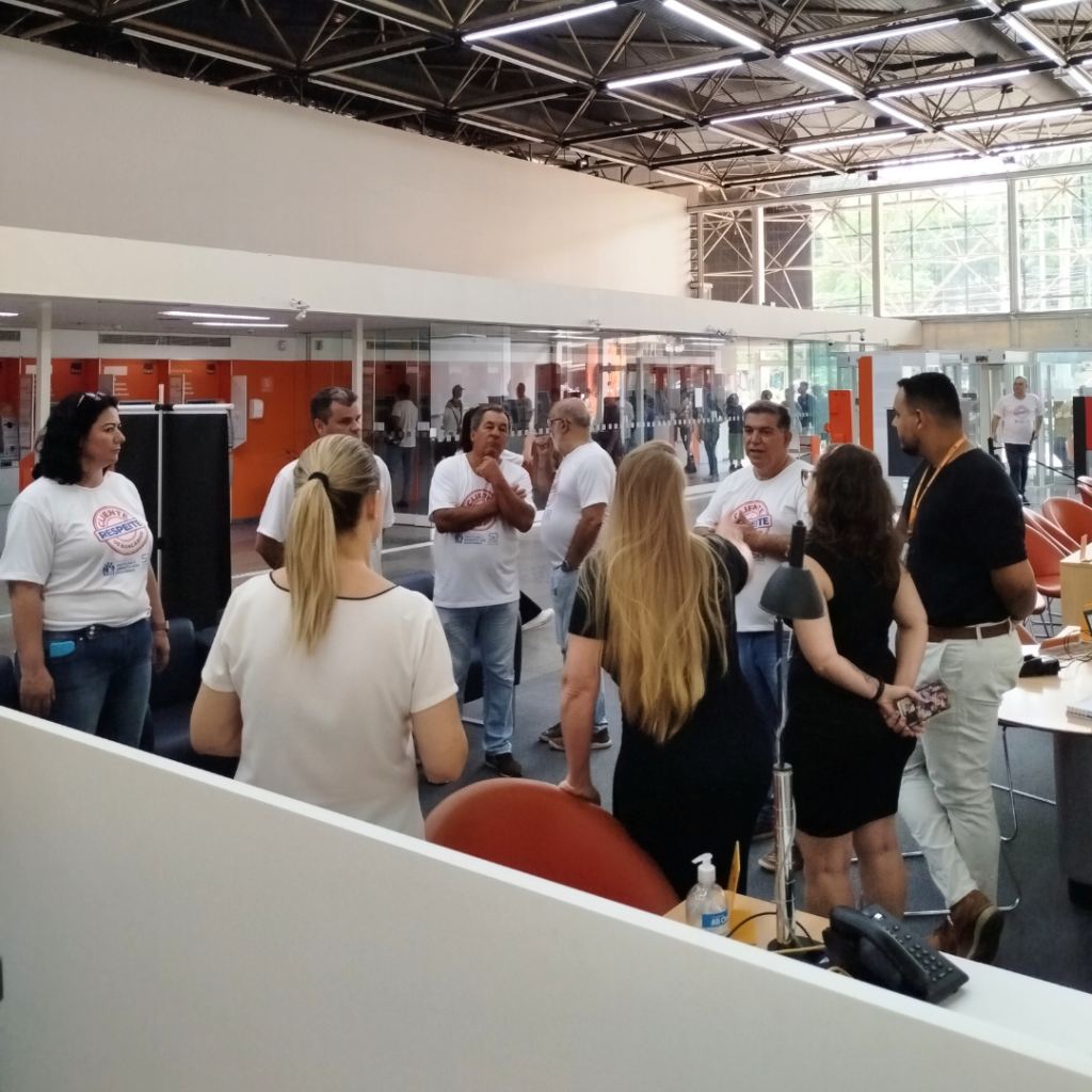 Além dos materiais de mídia (cartaz, banner, folhetos, faixas, vídeos) e das visitas às agências, o Sindicato organizou uma agenda de contato com agentes de segurança pública da cidade, para informar sobre a situação enfrentada pela categoria e definir estratégias conjuntas diante de situações de agressão.