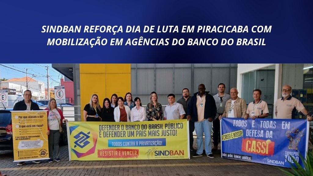 Nesta quarta-feira (22), os diretores do Sindicato dos Bancários de Piracicaba e Região participaram ativamente do Dia de Luta em agências do Banco do Brasil da Vila Rezende e do centro de Piracicaba. A mobilização faz parte de uma ação nacional, que ocorre em todo o país, em defesa dos direitos dos bancários e contra medidas adotadas pelo banco sem diálogo com o movimento sindical.